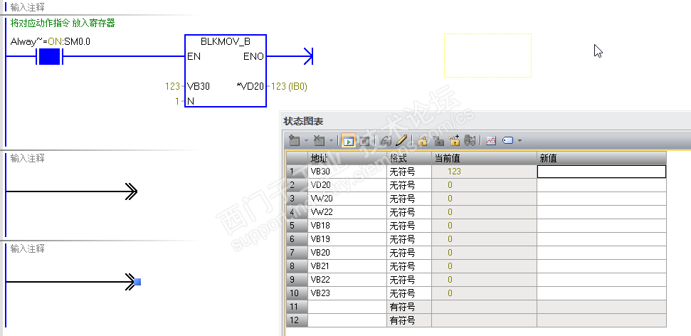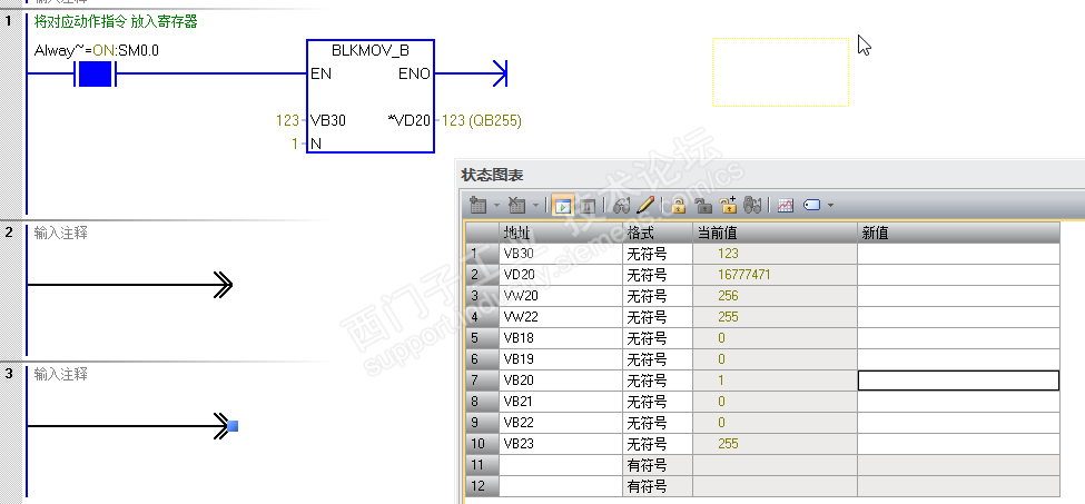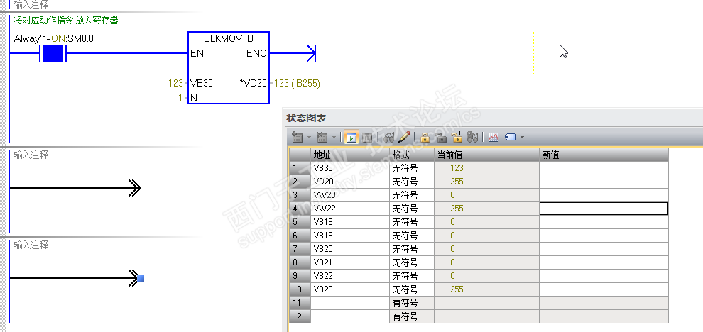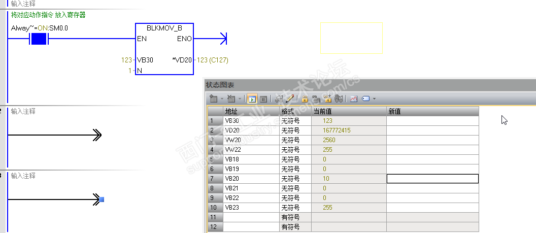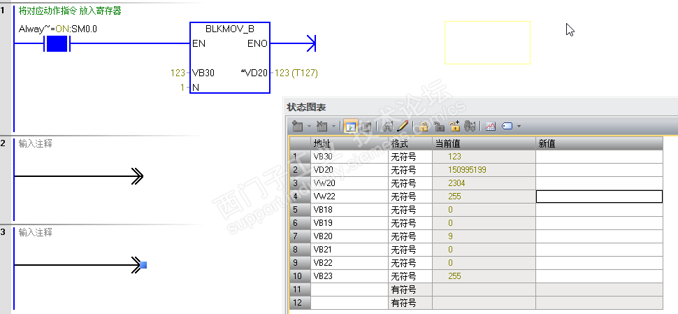 VB30=123,VB20=10,VW22=255→C127=123(应该是计数器占用双字)