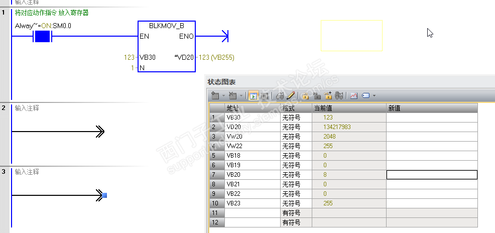 VB30=123,VB20=0,VW22=255→IB1255=123