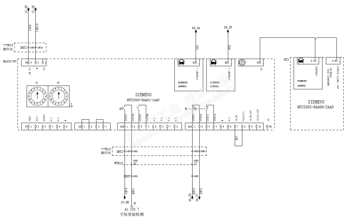由于没有配件就让维修人员将X21接口的40E2,39E2两根线直接短接起来了,将急停报警消除,暂时使用。由于当时手头没有短接线维修人员直接将7,8号位的跨接线给用了(这里为后面的故障留下了伏笔),后回到办公室提报了一台HT2的配件,和领导汇报了下就等配件了,设备先这样使用。