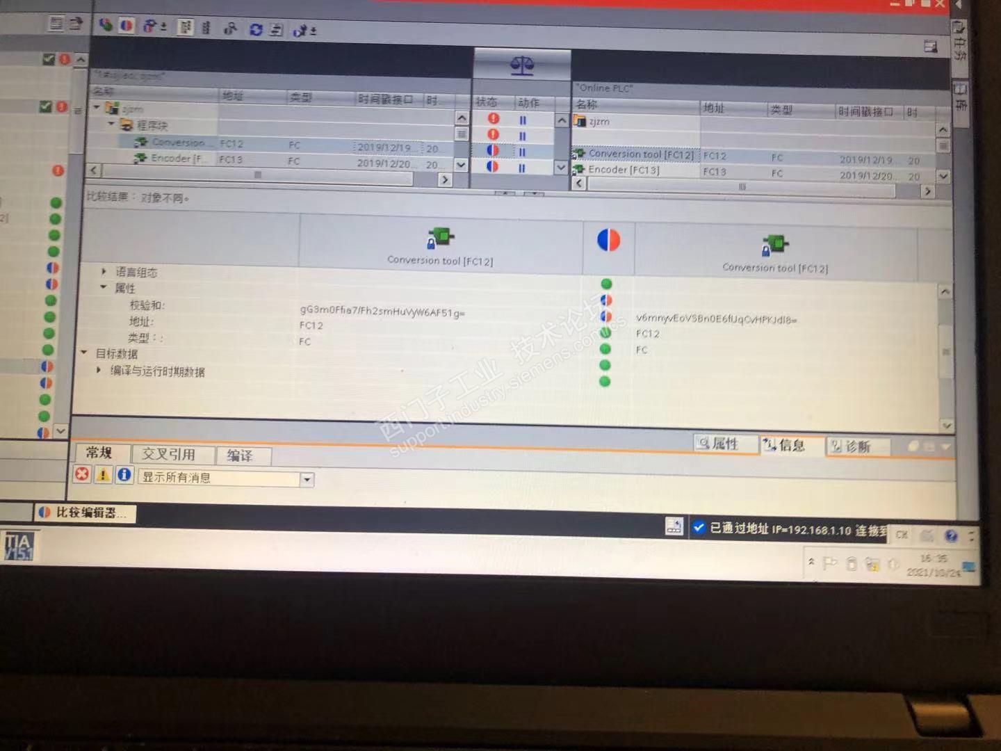 各位师傅好,今天在cpu为1515-2pn中上载了些程序,上载提示成功,然后就做了下比较,提示属性中的校验和不一样,这是什么原因造成的,这样对程序有影响吗?怎么解决,谢谢,上载了7-8cpu都是这样子