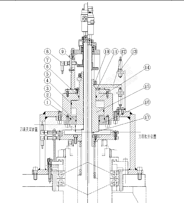 公司一台龙门铣刀具拆卸总是不流畅,由于该设备在保修期内,故联系厂家进行维修,厂家到达现场后,测量打刀量不够,如图所示,打刀量由15油缸行程及连杆底部垫片厚度确定。