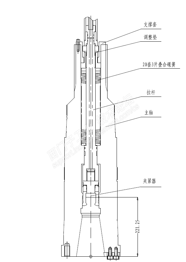 查看图纸,根据图纸情况研究只能将主轴拆除检查内部垫片。下图为主轴图纸。