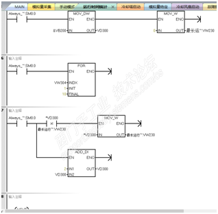 我赶紧拉了个临时电源,只给PLC和触摸屏送上电,一边接着线,一边编程调试的程序,通过监控和强制点的方法,算是比较顺利的把大部分程序都赶在15号之前编完并调试完了。