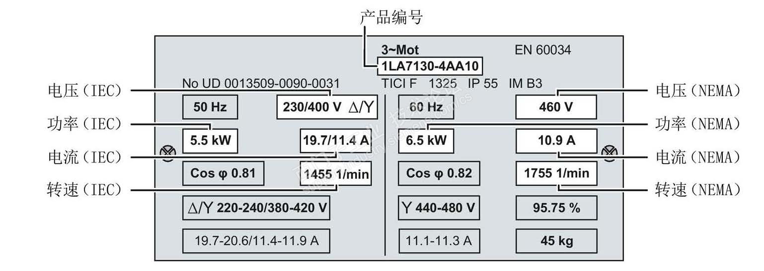 我们在第一次调试之前,首先要根据图示,找到电机铭牌所标注的相关数据,并将其作为电机快速调试的基本参数设置。