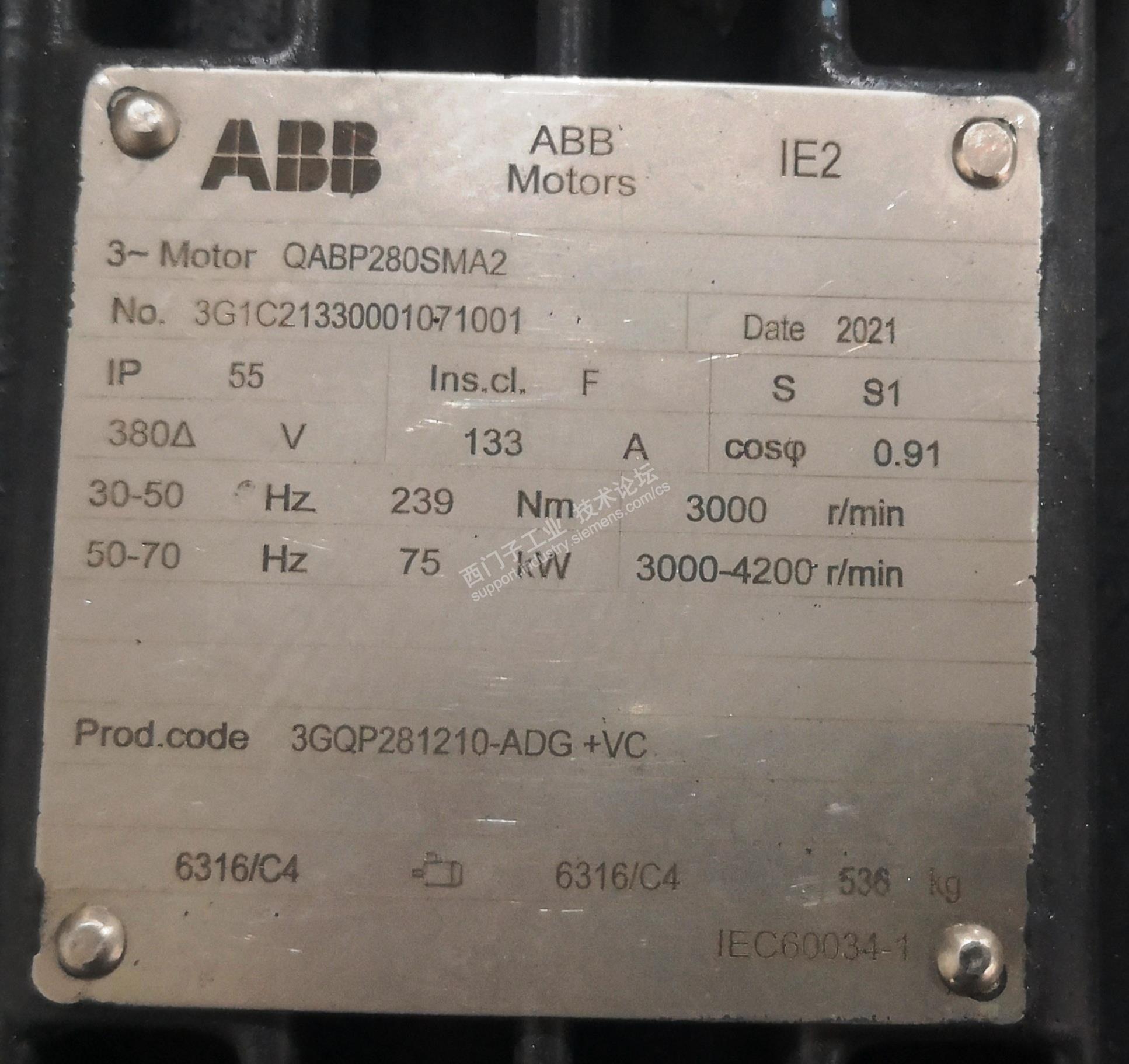 然而,然而ABB电机的最近铭牌数据却是如此这般的。如下图示: