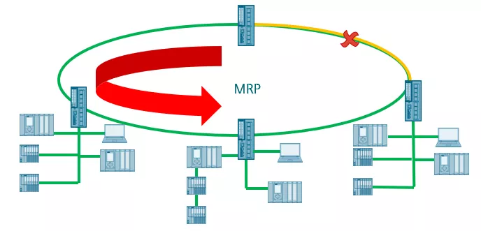 专门针对PROFINET 网络的环网协议,是符合 IEC 61158-5-10 标准的一种适用于工业自动化行业应用的网络冗余协议。重构时间最大200ms,实际的重构时间取决于网络的规模,一般认为几十ms级别,因为重构时间比较快,因此非常适合工业网络的应用。