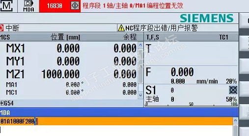 828D添加第四轴A后,编程G01A1000F200走定位。