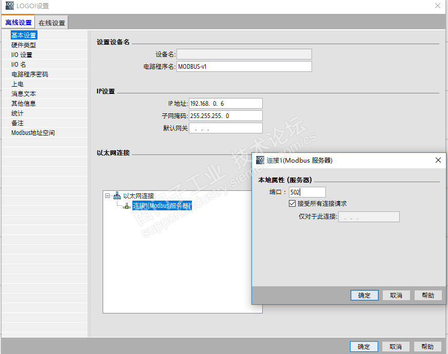 上次做了一下LOGO利用S7协议进行以太网的通讯测试,这次又倒腾了一下,做了一次基于MODBUS TCP协议的以太网通讯测试,其中仍然将SMART作为主站(客服端),LOGO作为从站(服务器)。