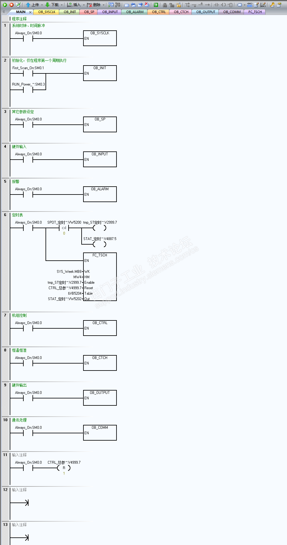 主程序这样顺序执行下来,可以保证通讯不会影响参数设定值、不会影响到PLC的输入状态导致后面的数据处理逻辑错误。