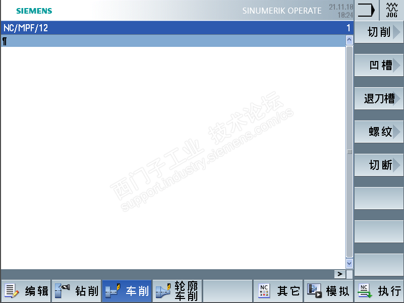 本来按下“车削”软键,按“切槽”软键会出现循环界面,但现在出不来,也没有报警,不知哪里不对了,我重新建立一个机床,还是和当前一样。