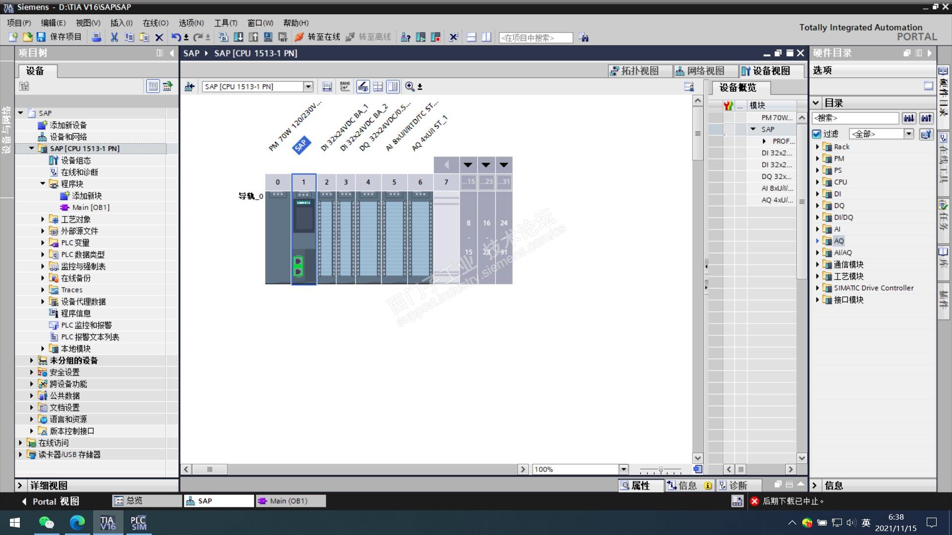自己创建了一个项目,CPU1513的属性打不开,设置不了IP地址,请问这是什么情况