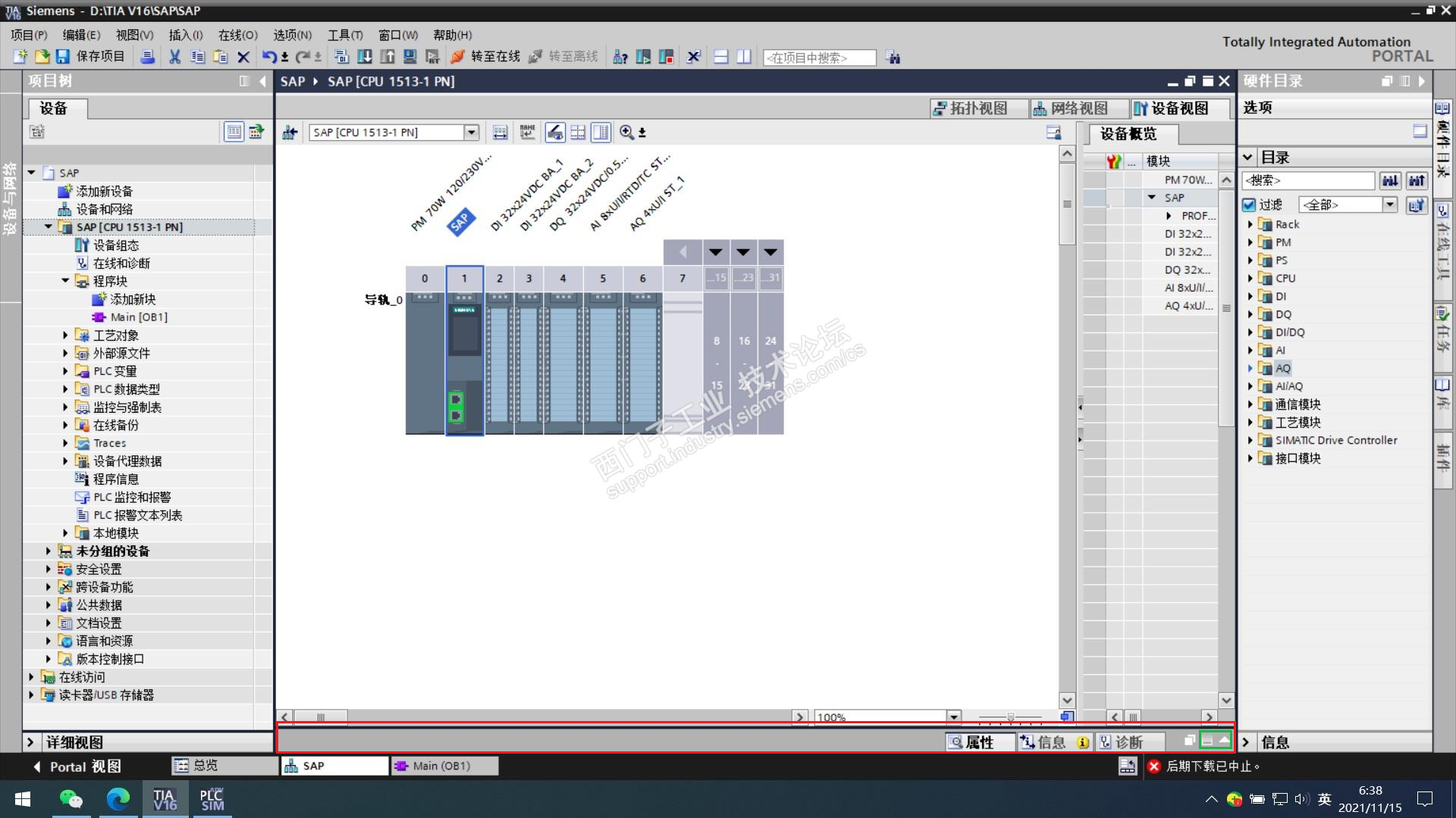 属性的设置在软件平台下方的巡视窗口内,如下图红框所示,需要点中绿框内的向上按钮才能调出窗口。
