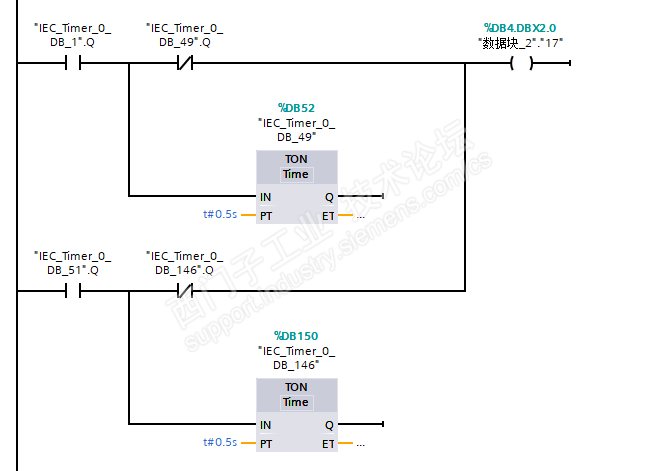 大家好,我想请问当仿真时,IEC_Time_0_DB_1.Q这条路径接通时可以在程序的监控里面看到DB4.DBX2.0接通,但是在DB块里面监视不到DB4.DBX2.0变为1,当IEC_Time_0_DB_51.Q这条路径接通时在程序里面与DB块中都可以监控到置1。这是什么原因,谢谢。