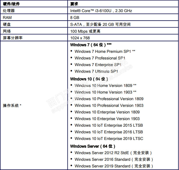 安装时的系统要求下表列出了安装时需满足的软件和硬件最低要求: