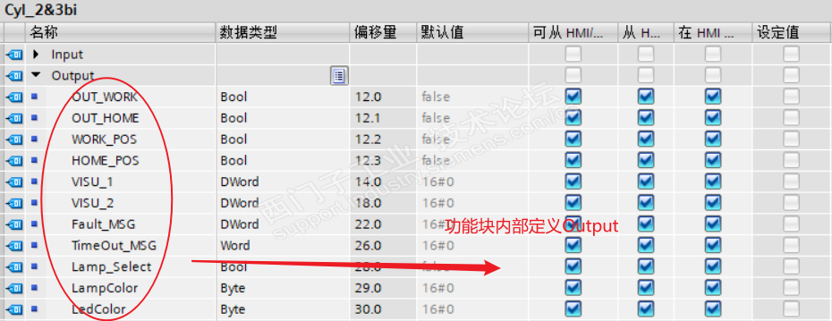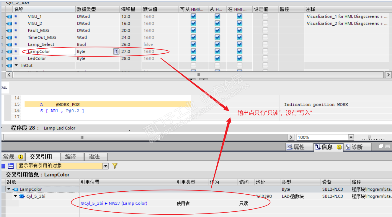 现场程序有个功能块外部引脚为输出点,功能块内部都是Output。交叉引用这些点,都没有“写入”,只有“只读”。为什定义Output只有“只读”没有“写入”?