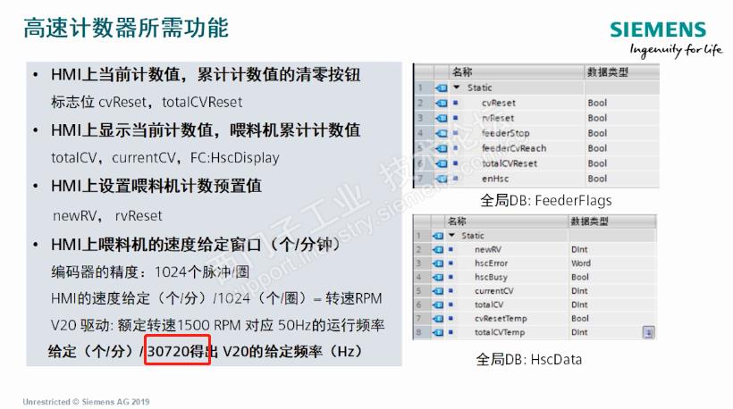 1. 课时18 视频第11:00分钟 HMI中设定喂料机给定频率的计算中30720这个值如何计算的?