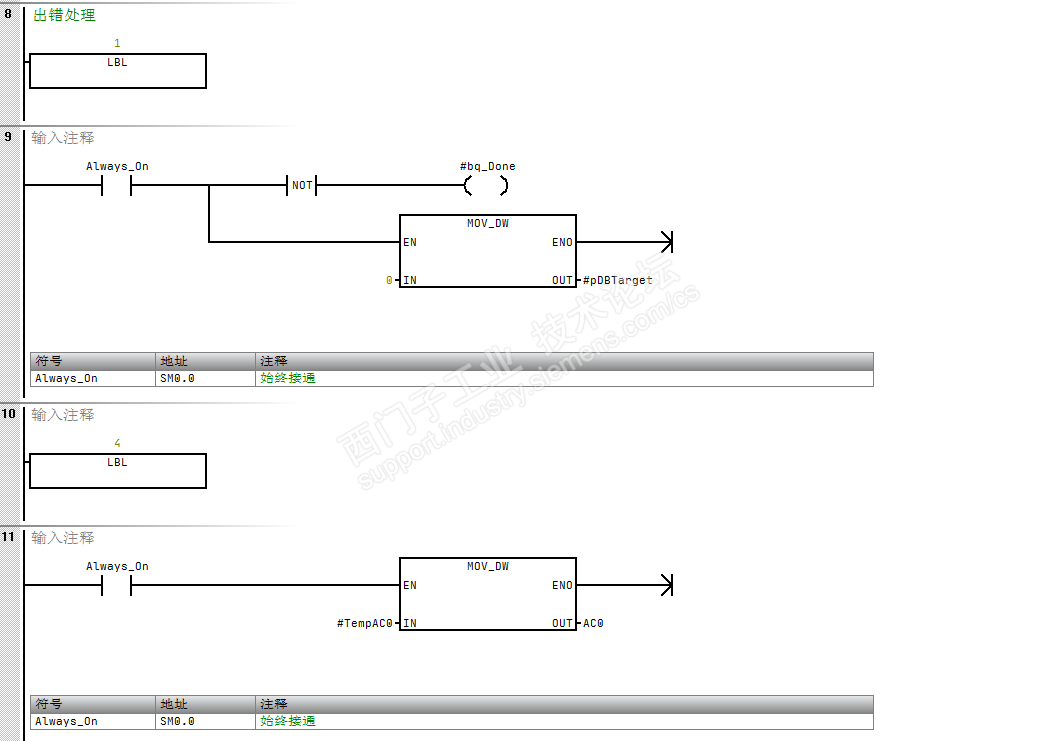 这样,无论能不能按顺序扫描到子程序,子程序都有一个自己的数据块被固定,下次扫描无论是否执行该子程序都不会改变位置。