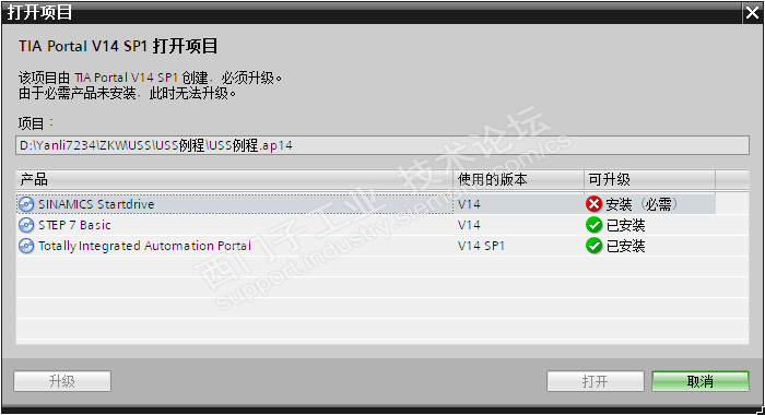 我下载了一个USS的例程,V14版的,在V16上打开,说是缺少Startdrive V14,我装了start drive advance V16,还是不行,大佬们给点儿指点吧。