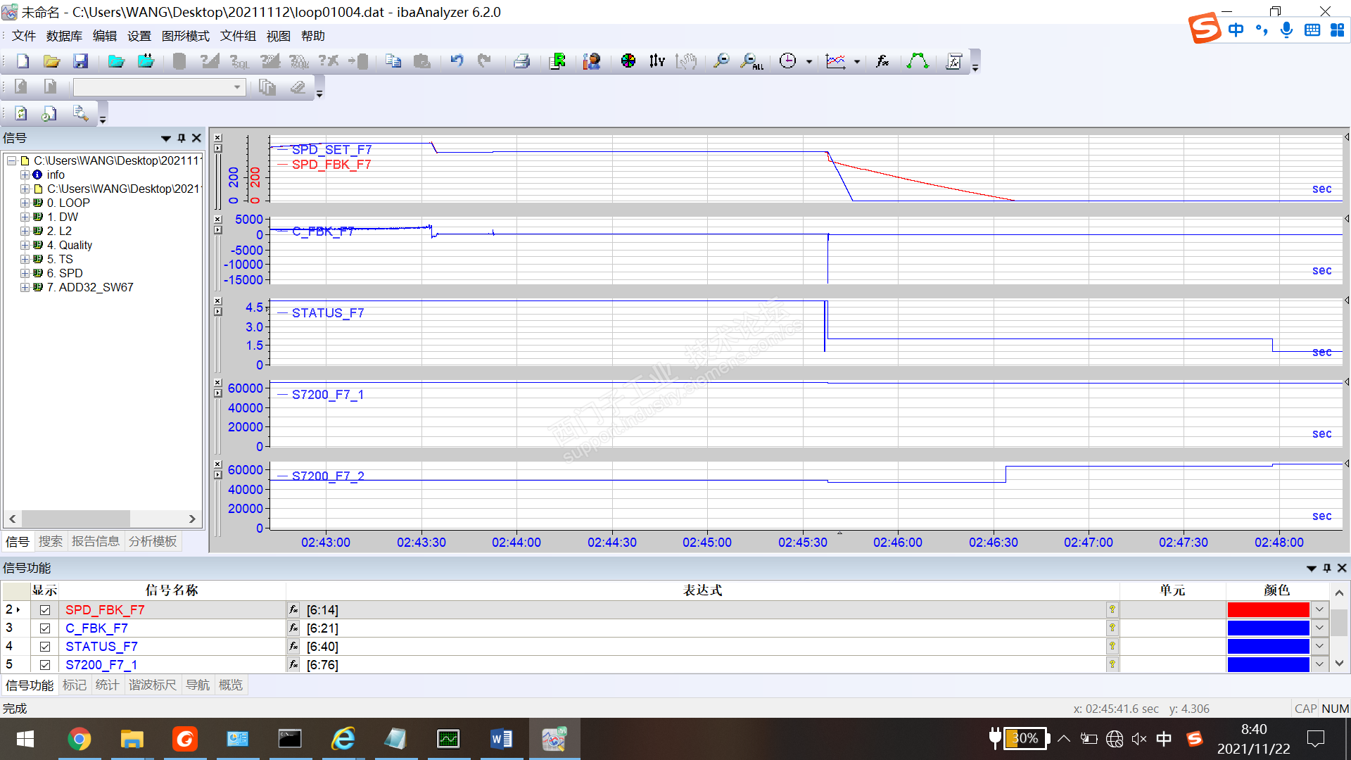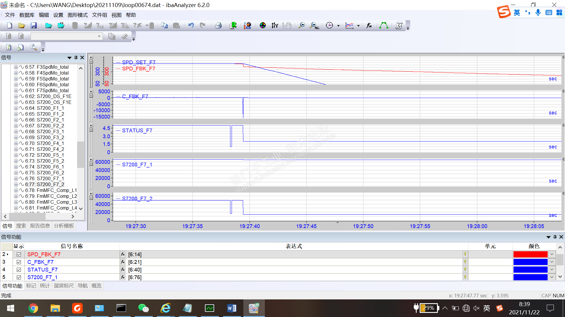 因自动化的pda采集系统,采样周期长(25ms), 信息少, 关于传动状态的模拟量只有三个(五个),开关量数量也仅有几个,且有的经过s7-200转发。因此,数据粗糙,参考价值有限。