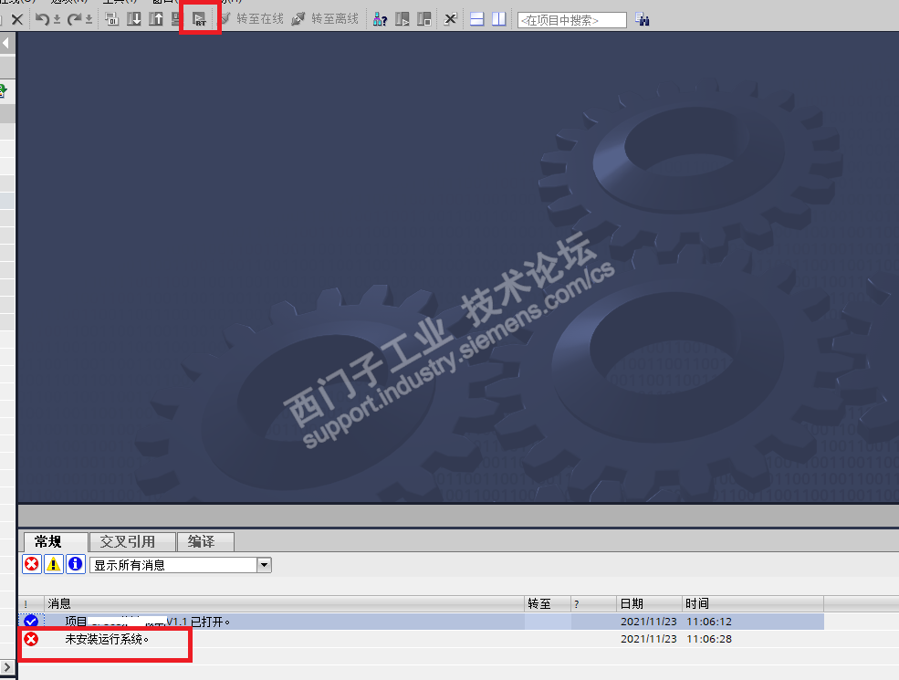 用博途V15SP1组态了一个WINCC ,当点击启动仿真时,编译完后不弹出画面,提示未安装运行系统。见下图