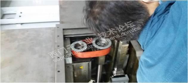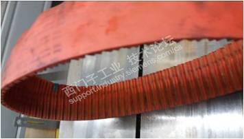 从机器上侧开展X 轴齿形皮带的更换工作。