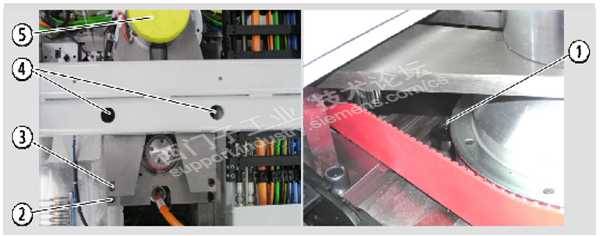 检查齿形皮带张紧度,必要时进行修正(参见章节 机器保养/齿形皮带检验)。