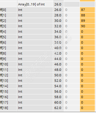 DB里面建立了20个INT数组 0-19 (图1), SCL里面用增计数器做加法运算0加到19后复位清零(图2) ,