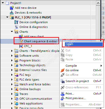 点击“Chart sequence & extras”(图表顺序和其它),右击“Open”(打开)。