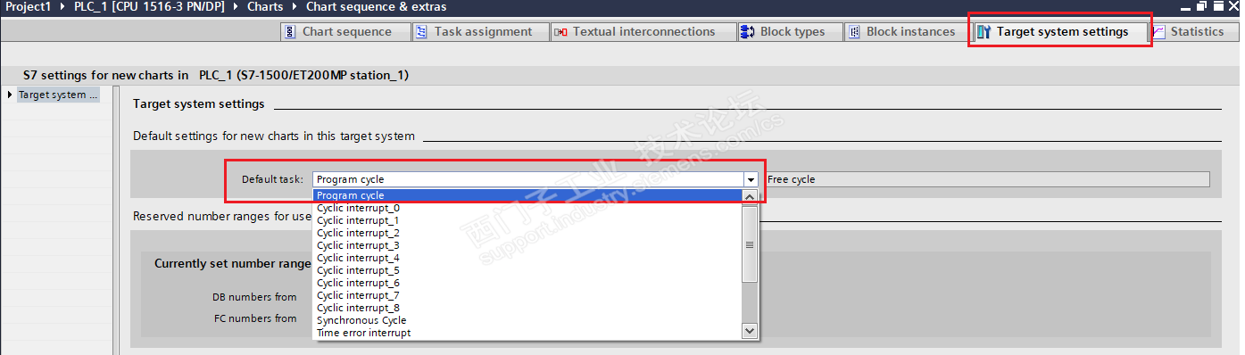 切换到“Target system settings“(目标系统设置),设置默认任务为程序循环。