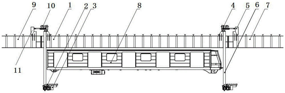左右两边各一个电机,把地铁 前后移动到检修库