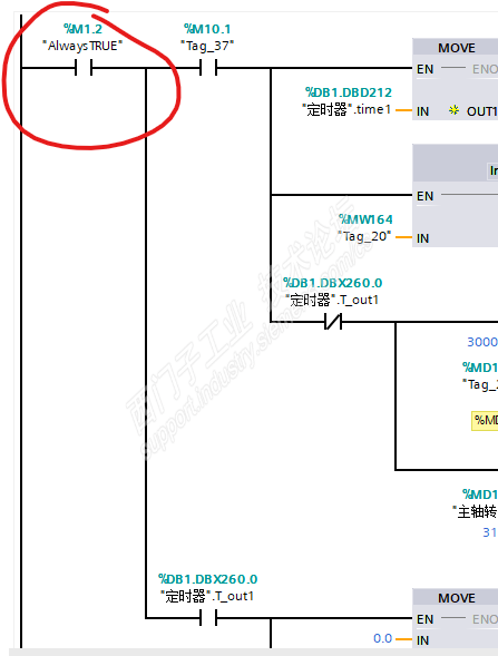 请问这个程序为什么要加一直接通呢?如果不加这个,把两段程序写在一个程序段里会怎么样呢?