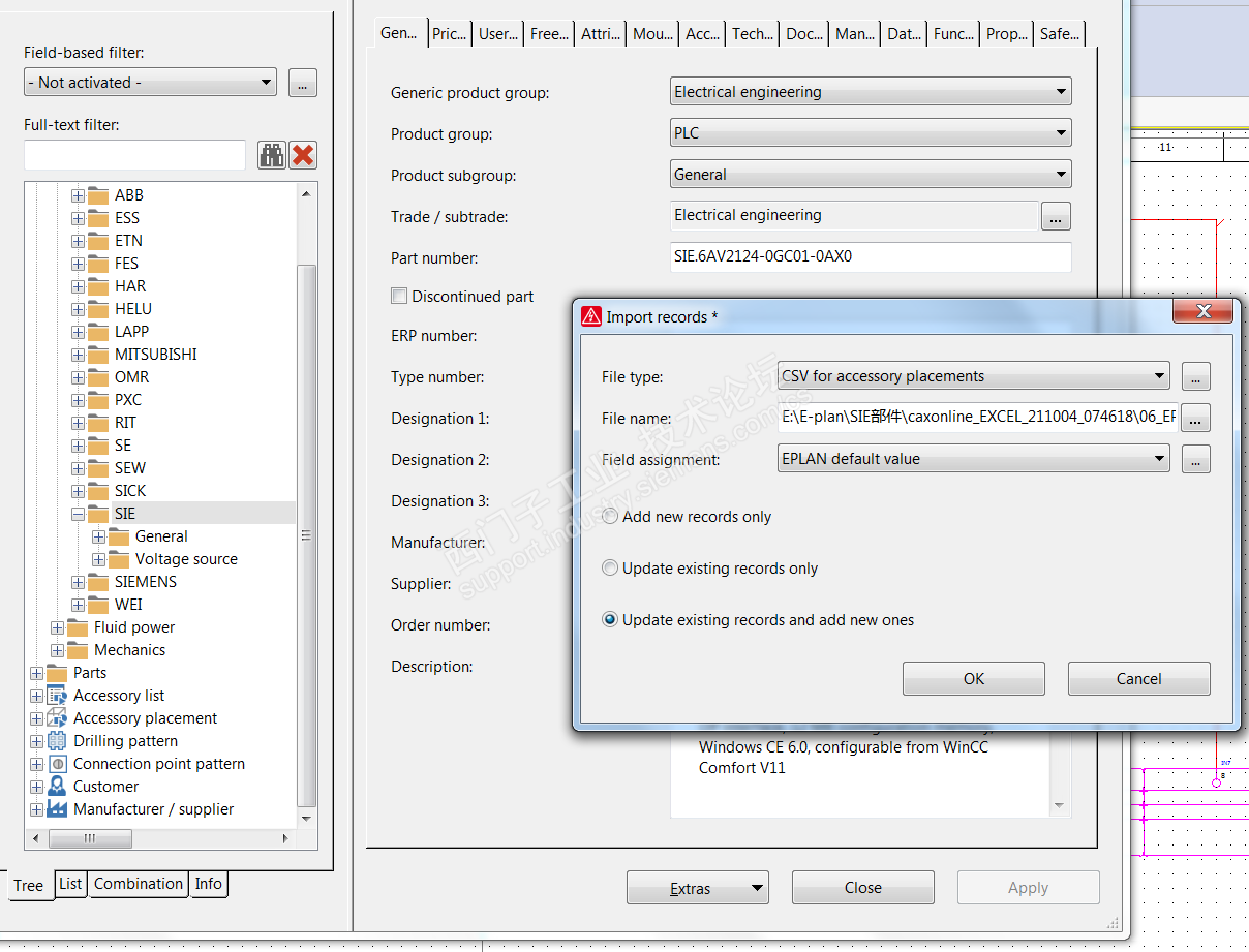 请教下在西门官网下载的MM440/420的部件如何导入EPLAN部件库?如下图下载的格式和CSV文件,导入后全都找不到。