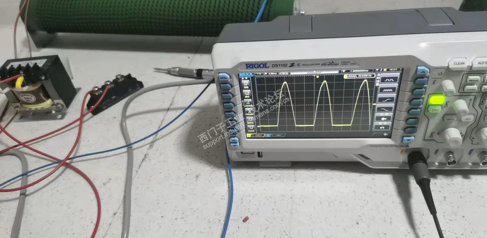 我在整流回路上串联了Uk=2%的20A电感, 0.7mH。 电阻是20Ω, 电压是220VAC. 采集电阻两侧电压。这个波形是不连续的。 经过考虑, 应该是电感偏小。 准备搞个大的试试。