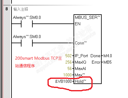 这就很奇怪了,难道smart200plc做Modbus TCP服务器端通信时,不能把Hold地址设置为大于VB990的地址吗?