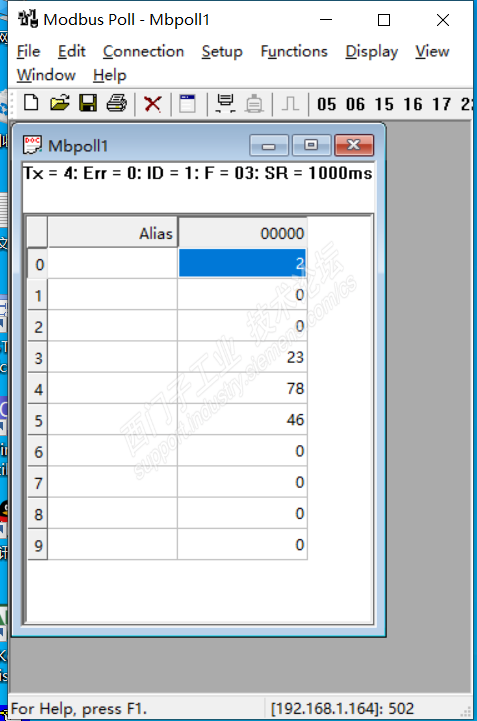 但是,我用Modbus Poll软件测试时,软件提示通信超时错误,无法与plc通信连接,