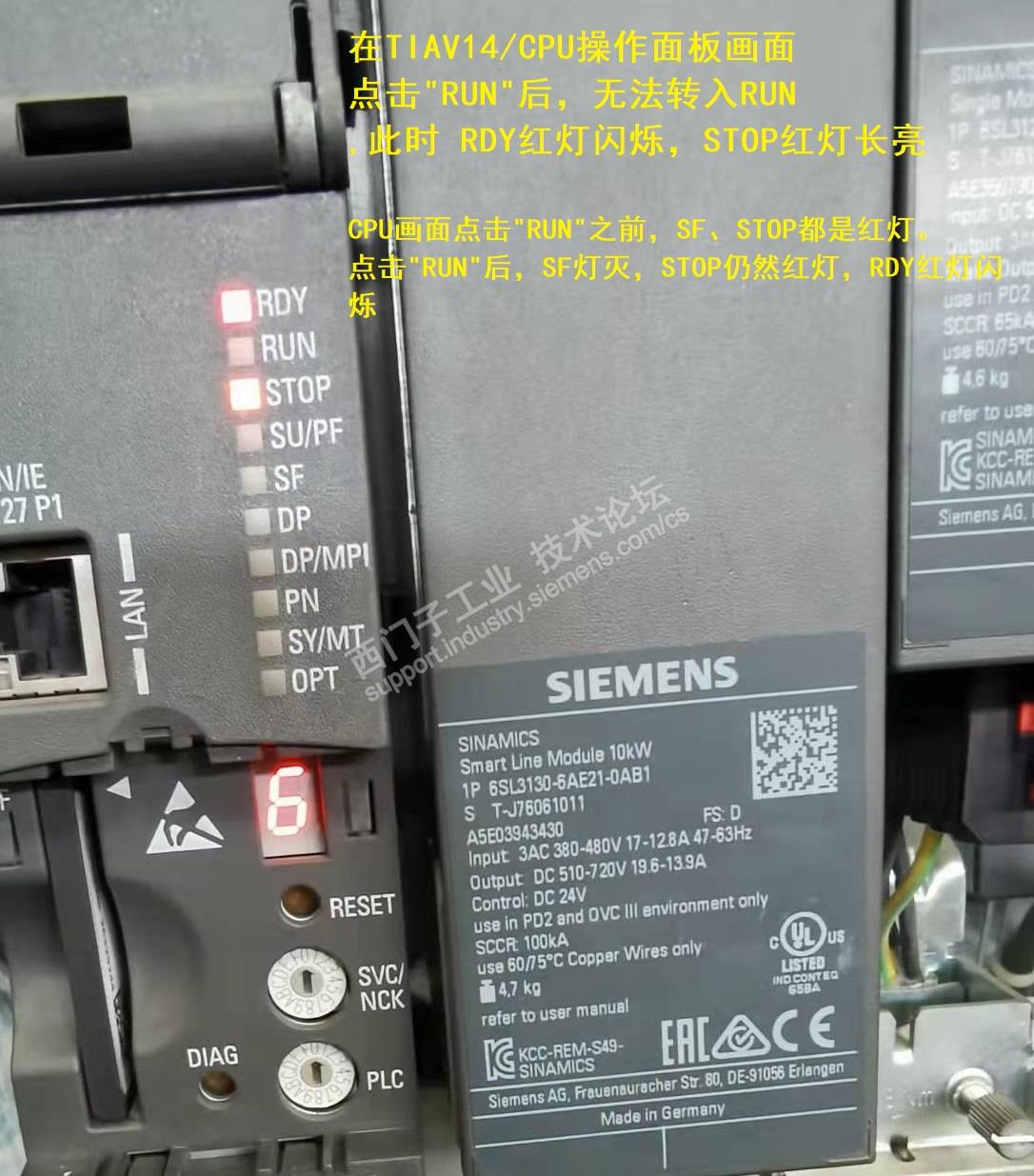 CPU操作面板,点击“RUN”按钮,CUP无法进入RUN(之前遇到过报警,点击RUN后即正常)