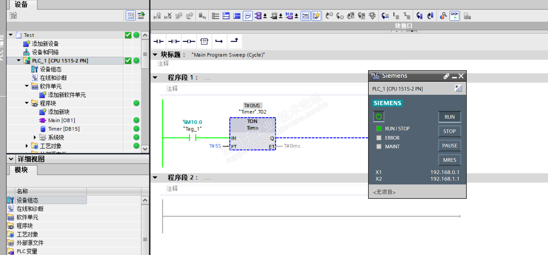 在S1500组态,只有一个计时器,但不动作,不提示;