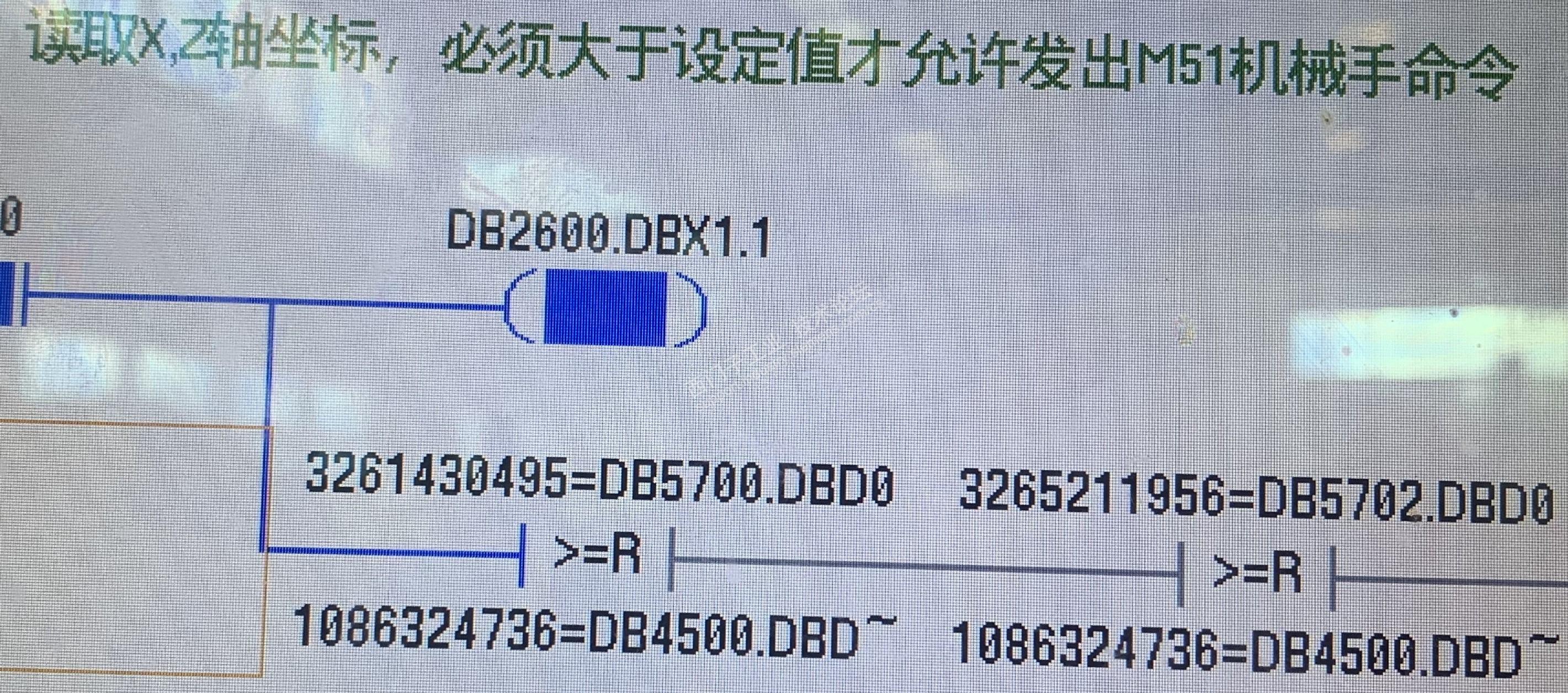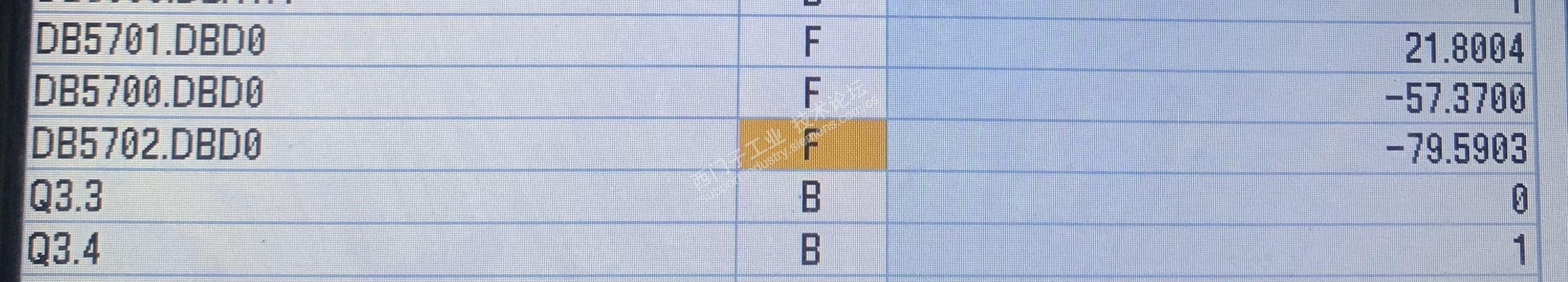 大家好,我们单位有一台铣打机,在程序里监控坐标轴值时,跟面板上显示的数值对不上。在NC状态表里进行监控时,坐标值跟面板上的能对上。NC状态表里用的DB5700.DBD0,程序里也是这个地址。程序里为什么就不对呢?