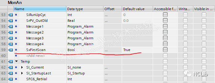 我们通常需要在编写的FB块的CPU首次扫描调用时需要初始化各种参数,或者该块还可能包含只需要执行一次的附加任务,具体取决于你的块功能。如果你的块是这种情况,你必须实现初始启动序列。下面介绍三种常见的初始化方式。