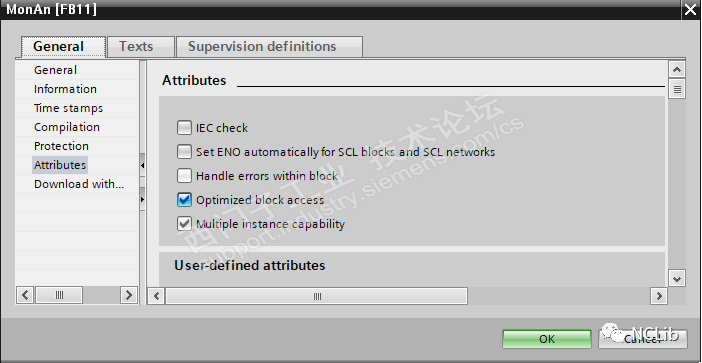 基于面向过程对象编写实例,不建议在FB内使用M和T区域,因此推荐1和2两种方式。在第一种方法中,可以考虑是否需要将SxFirstScan设置为不保持,以保证每次暖启动等都能执行某些初始化程序。