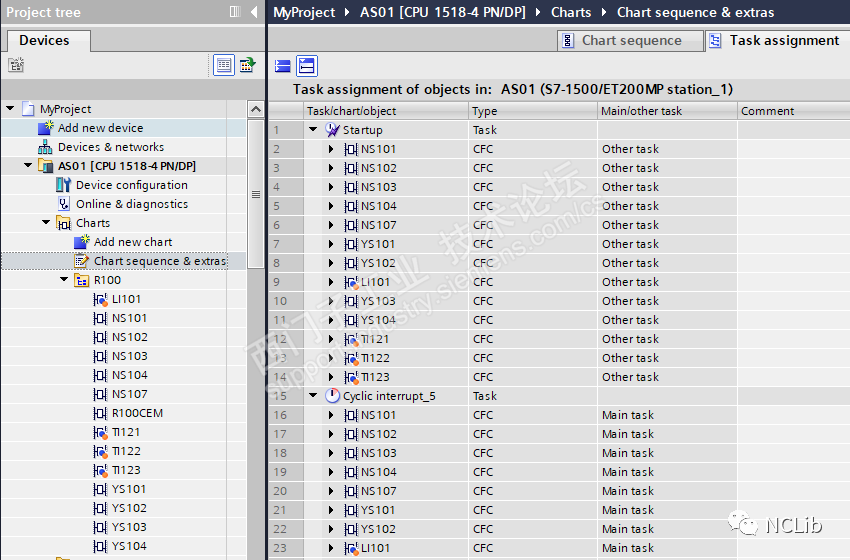 双击Chart sequence & extras后,在task assignment中可以看到FB既被OB1035调用,也被OB1100调用。