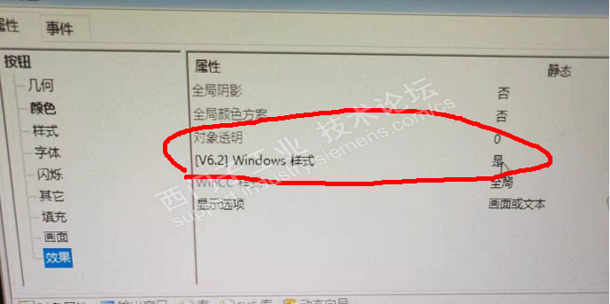 WINCC 按钮属性中的效果中的windows 格式是什么意思?