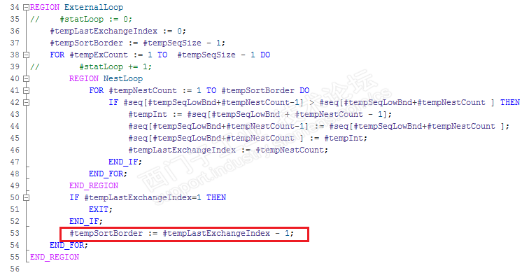 如下图红色标注所示,第一轮后 #tempSortBorder会得到最后交换的位置,并通过内循环影响下一轮的比较次数,从而达到减少比较次数的目的