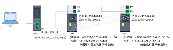 · 1号V90 IP地址:192.168.1.2,设备名称: v90pn1
