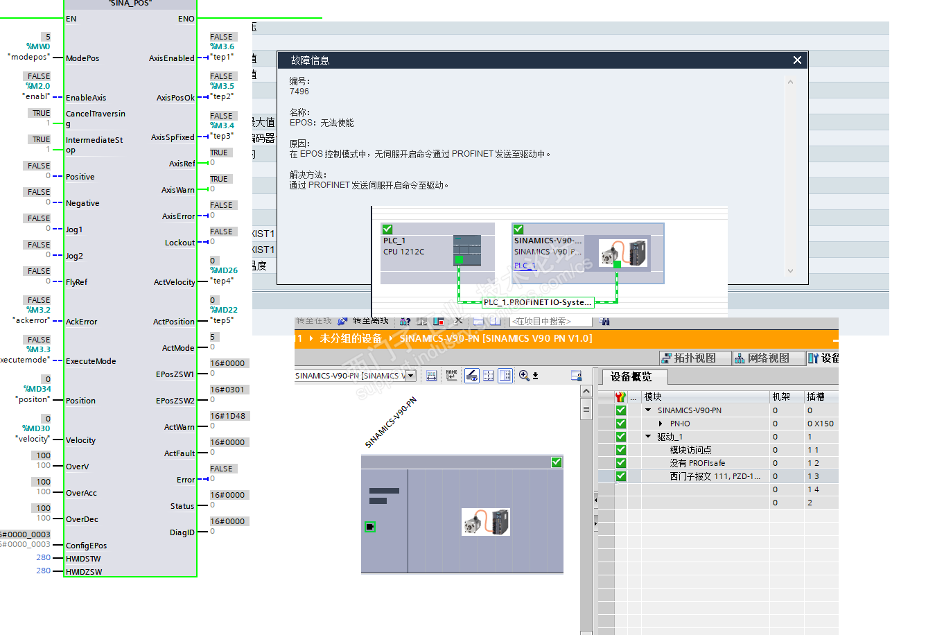 V90和1200使用EPOS模式,284块,报A7496.怎么使能?