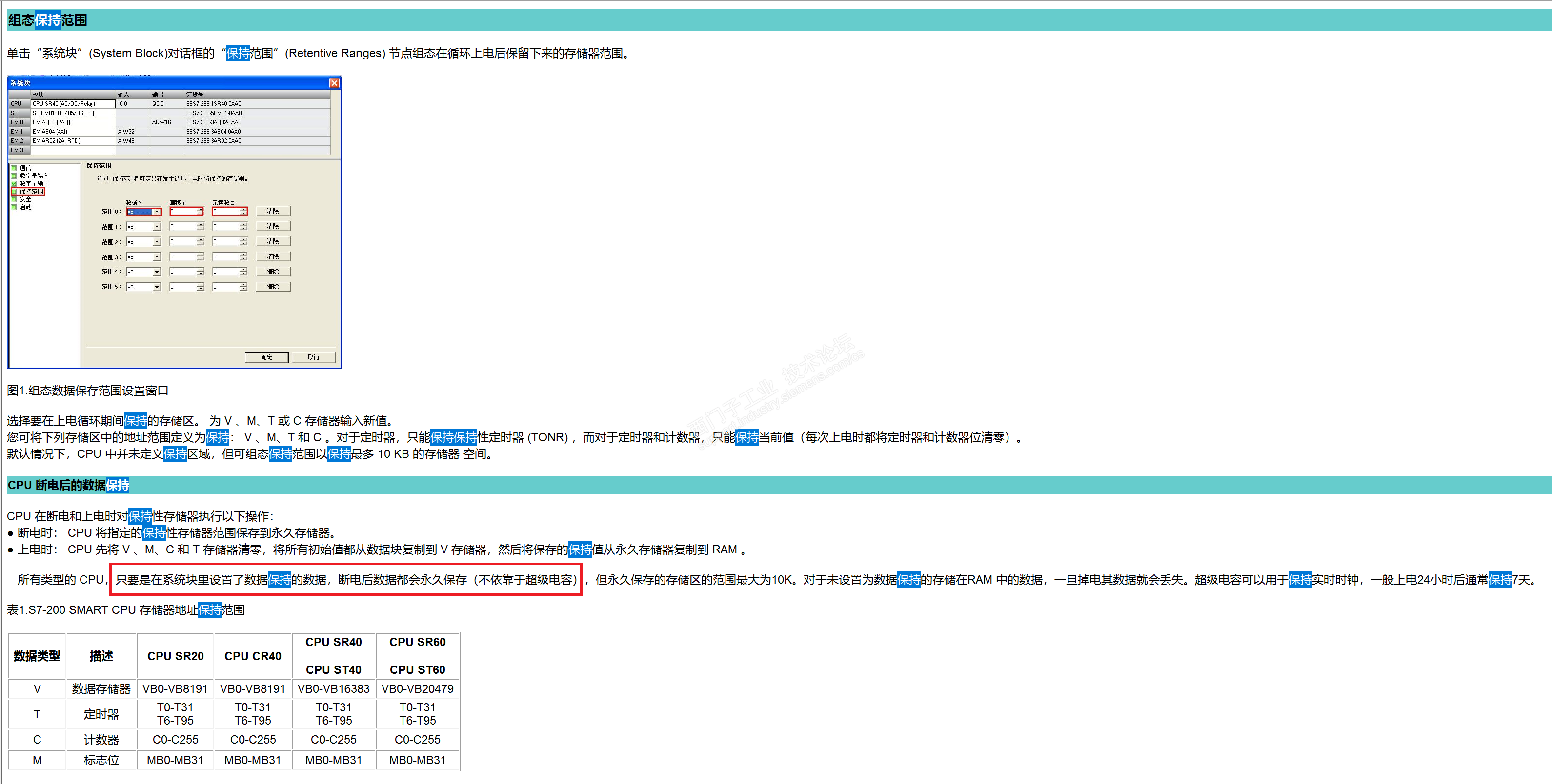 200PLC和200 SMART对数据保持的区别在下面红框。