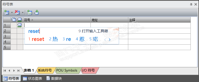 用微软自带输入法,在变量表中,符号名称输入中文完成后,全部字符都输入了。