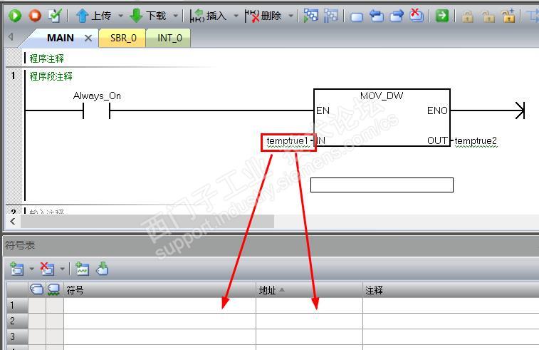 4.200smart软件编程界面拉入一个功能块,比如MOV_DW,那么功能块输入输出引脚的数据类型已经确定了,输入符号后,完成可以实现给符号自动分配地址。自动分配地址的好处:不会有时因为算错地址偏移导致地址部分重复。如果官方不愿意开发此功能,请见第5点。