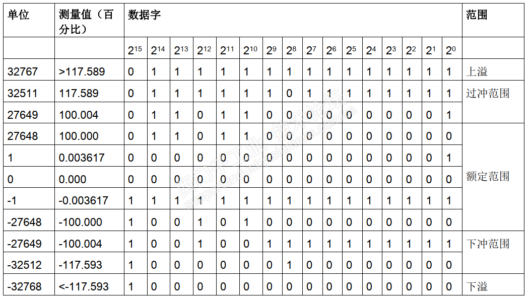 模拟量中的27648对应100%的量程,32767和-32768分别表示上溢和下溢,如下图所示。16384在模拟量中没有特殊意义,有些驱动中会用到的量程。