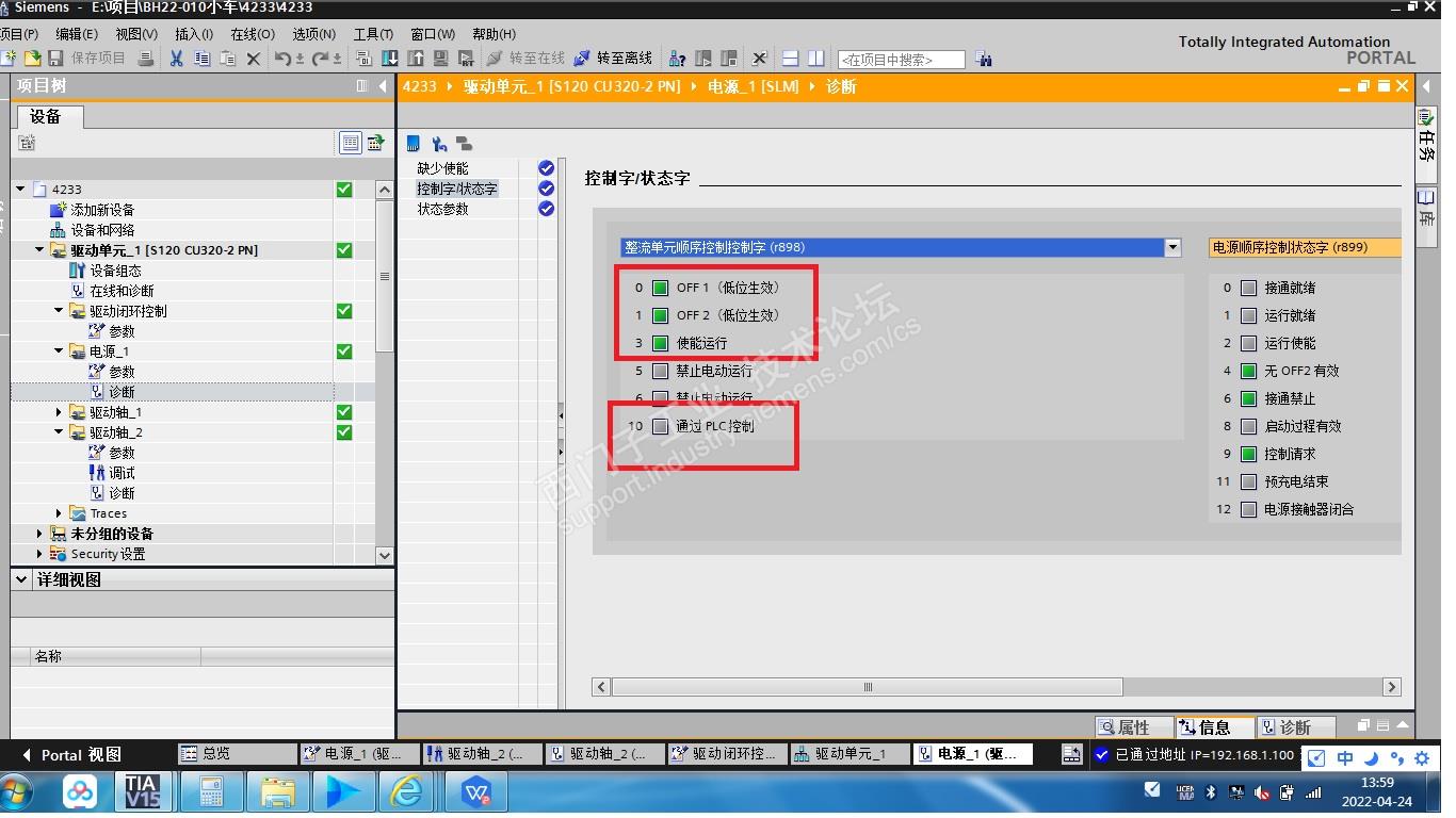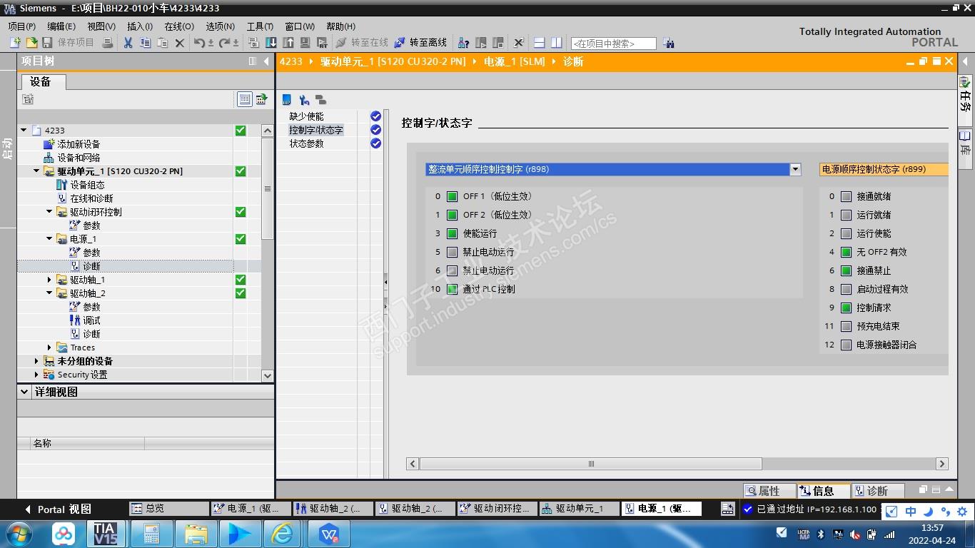 另外在调试过程中还遇到两个问题,一个是370的报文从40B变成0后,从驱动侧看,只有r898的第10位通过PLC控制的绿灯灭了,其他的都没变,为什么那些OFF和使能信号的绿灯没灭呢